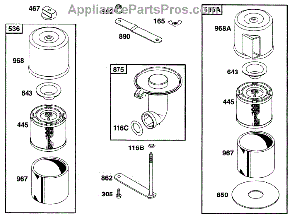 Parts for Briggs & Stratton 190402-6121-01: Air Cleaner Grps Parts