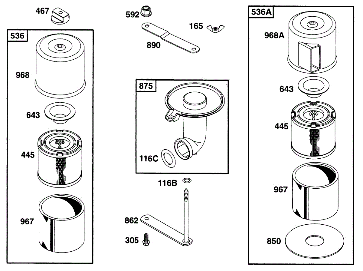 Parts for Briggs & Stratton 190417-6001-01: Air Cleaner Grps Parts