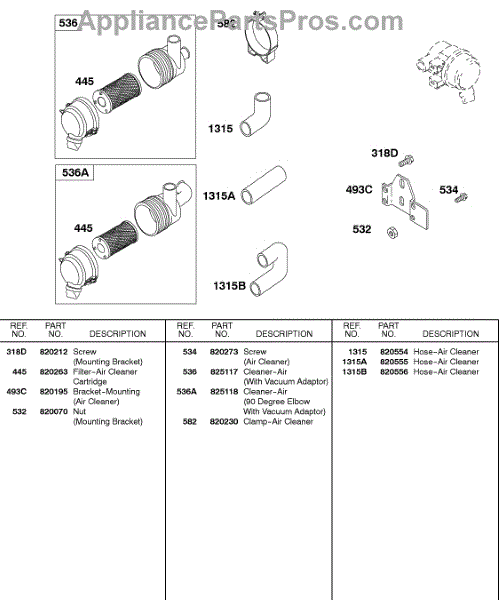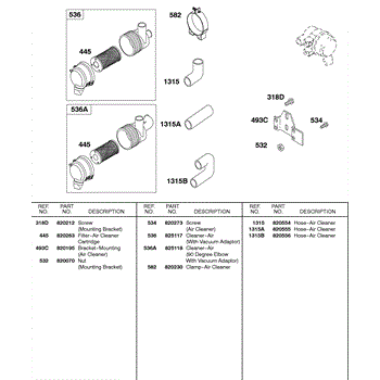 Parts for Briggs & Stratton 437447-0205-E2: Air Cleaner, Hoses Parts