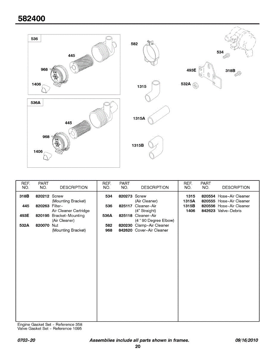 Parts for Briggs & Stratton 582447-0125-A1: Air Cleaner, Hoses Parts
