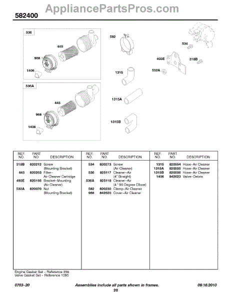 Parts for Briggs & Stratton 582447-0209-E2: Air Cleaner, Hoses Parts