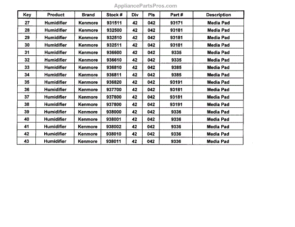 Parts for Kenmore 930110: Air Cleaner & Humidifier Filters Parts