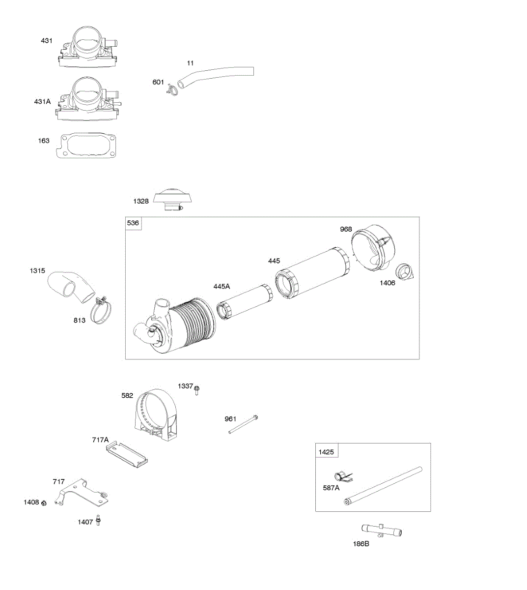 Parts for Briggs & Stratton 542777-2113-B1: Air Cleaner, Intake Elbows Parts