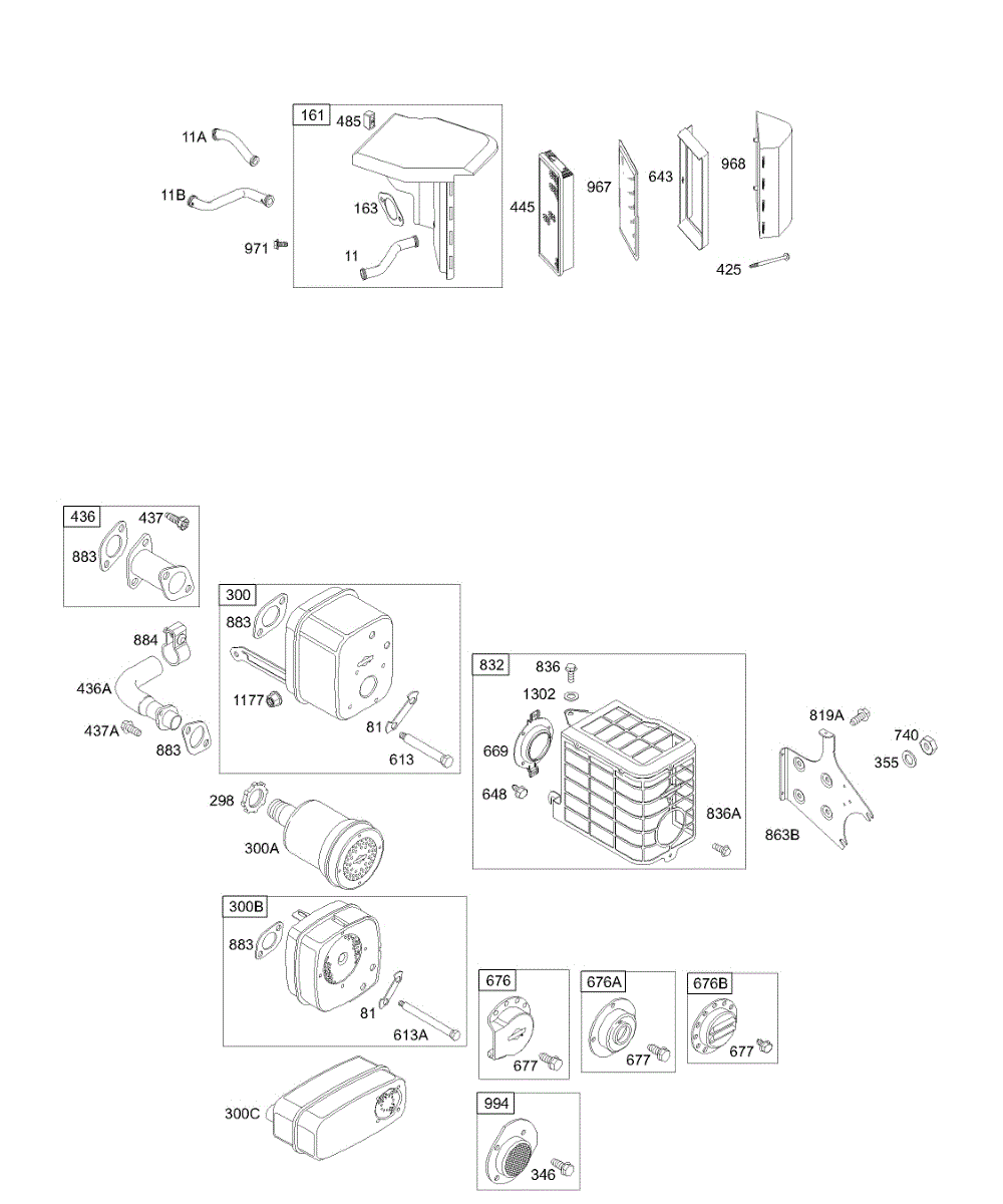 Parts for Briggs & Stratton 196402-0522-A1: Air Cleaner, Muffler Parts