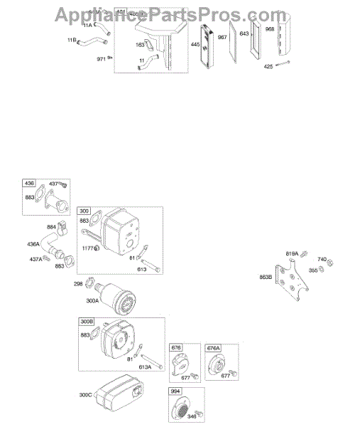 Parts for Briggs & Stratton 19G417-1181-E1: Air Cleaner, Muffler Parts