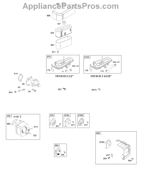 Parts for Briggs & Stratton 28D707-0130-01: Air Cleaner, Muffler, Intake Elbow Parts