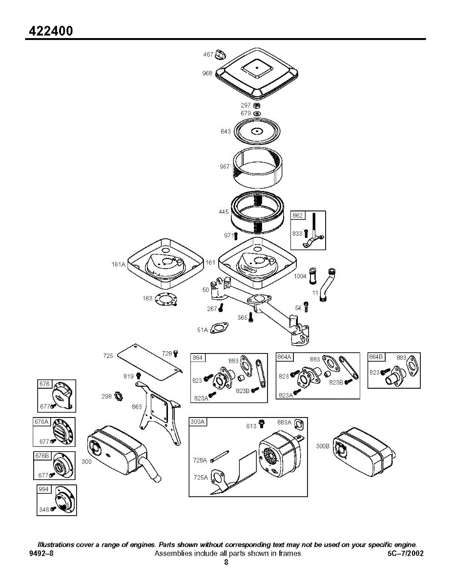 Parts for Briggs & Stratton 422437-1125-01: Air Cleaner, Muffler Parts