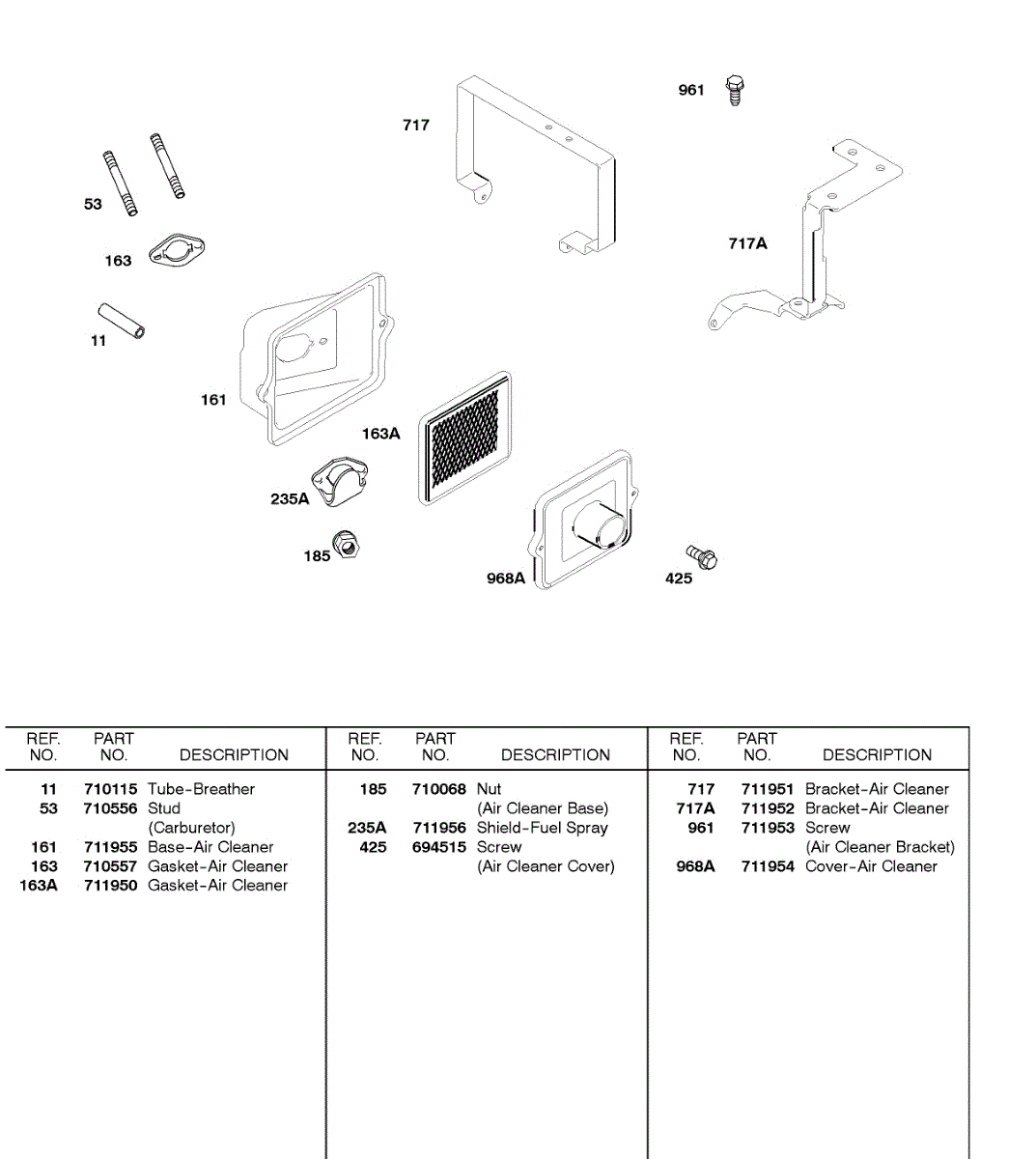 Parts for Briggs & Stratton 245437-0280-E2: Air Cleaner Parts