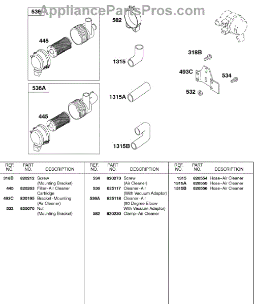 Parts for Briggs & Stratton 433447-0115-01: Air Cleaner Parts
