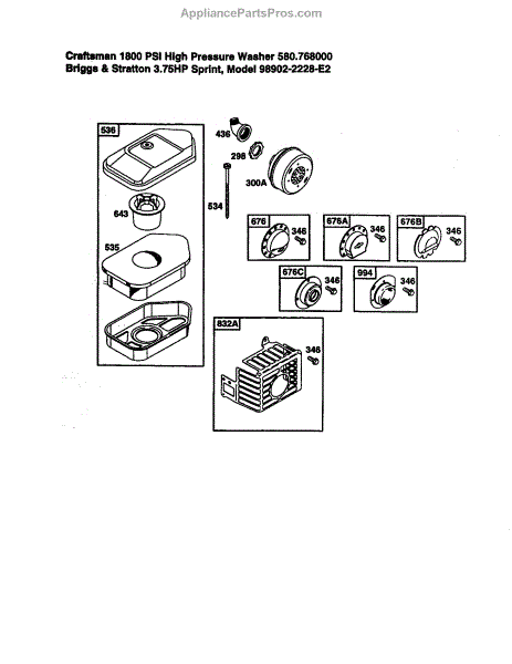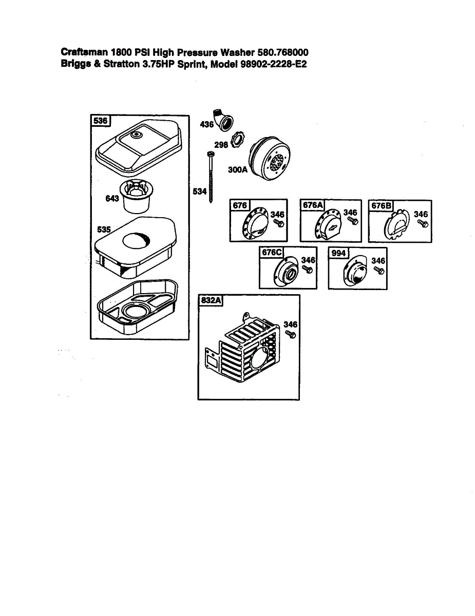 Parts for Briggs & Stratton 98902-2228-E2: Air Cleaner Parts