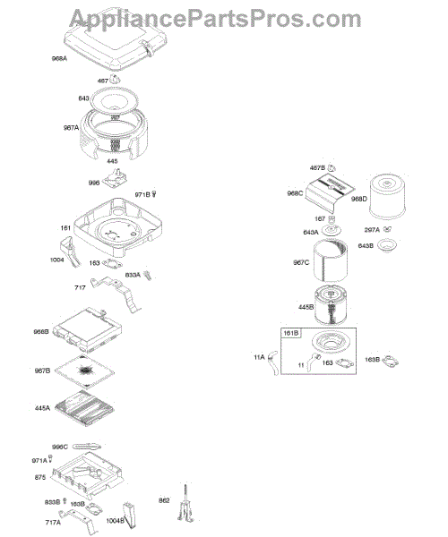 Parts for Briggs & Stratton 294447-1281-E1: Air Cleaners Parts