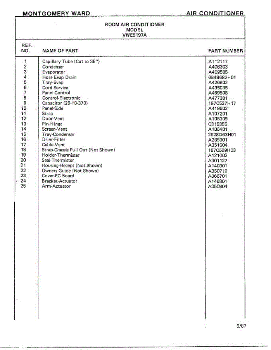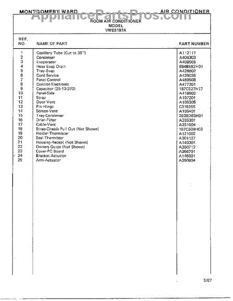 Parts for Frigidaire 5197A: Air Conditioner Page 4 Parts