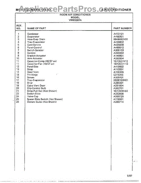 Parts for Frigidaire 5287A: Air Conditioner Page 4 Parts