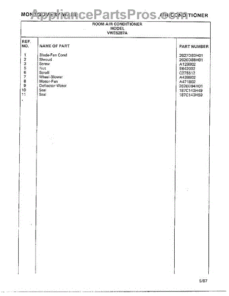 Parts for Frigidaire 5287A: Air Conditioner Page 6 Parts