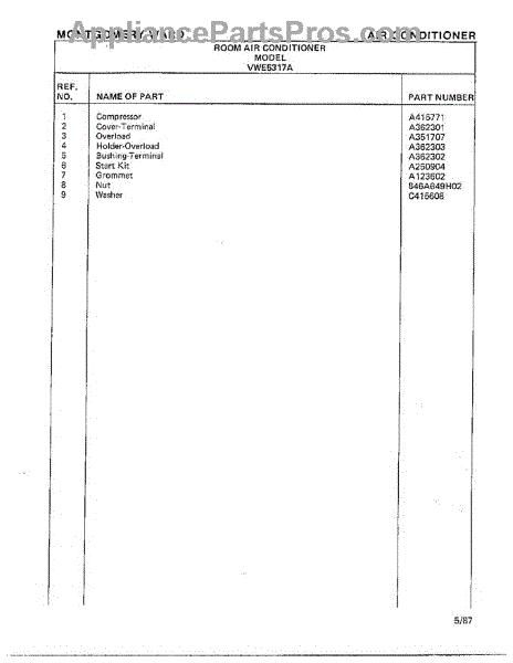 Parts for Frigidaire 5317A: Air Conditioner Page 8 Parts