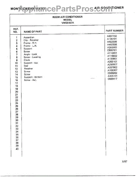 Parts for Frigidaire 5187A: Air Conditioner Page 10 Parts