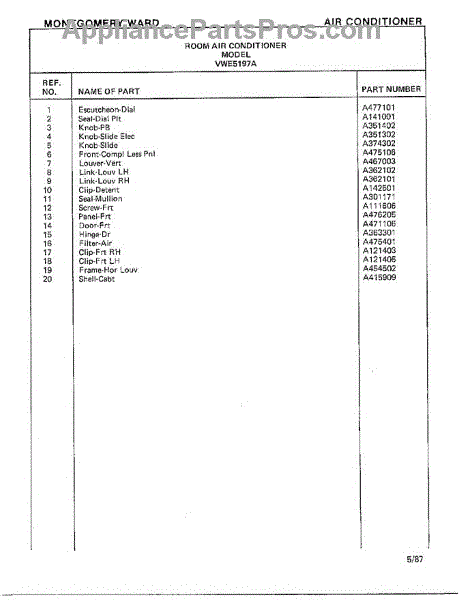 Parts for Frigidaire 5197A: Air Conditioner Page 2 Parts