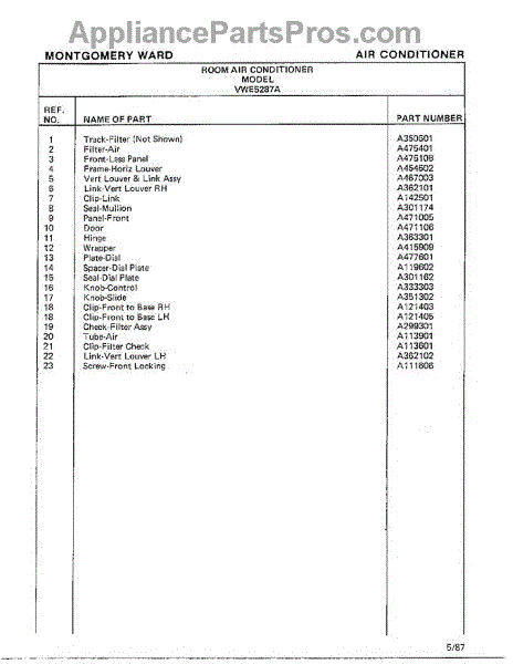 Parts for Frigidaire 5287A: Air Conditioner Page 2 Parts