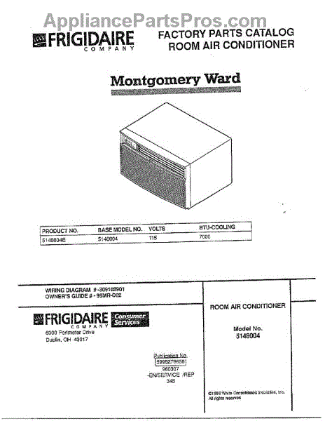 Parts for Frigidaire 5148004E: Air Conditioner Parts