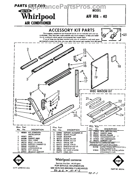 Parts for Whirlpool AFFH1840: 01 - Air Conditioner Parts