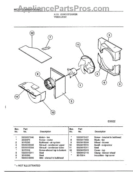 Parts for Frigidaire 5198C: Air Conditoner Parts