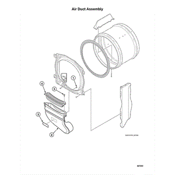 This air duct assembly routes airflow inside the washer cabinet to support proper ventilation and cooling of internal components. It replaces damaged or cracked ducts to restore directed airflow and reduce overheating risk. What it does: