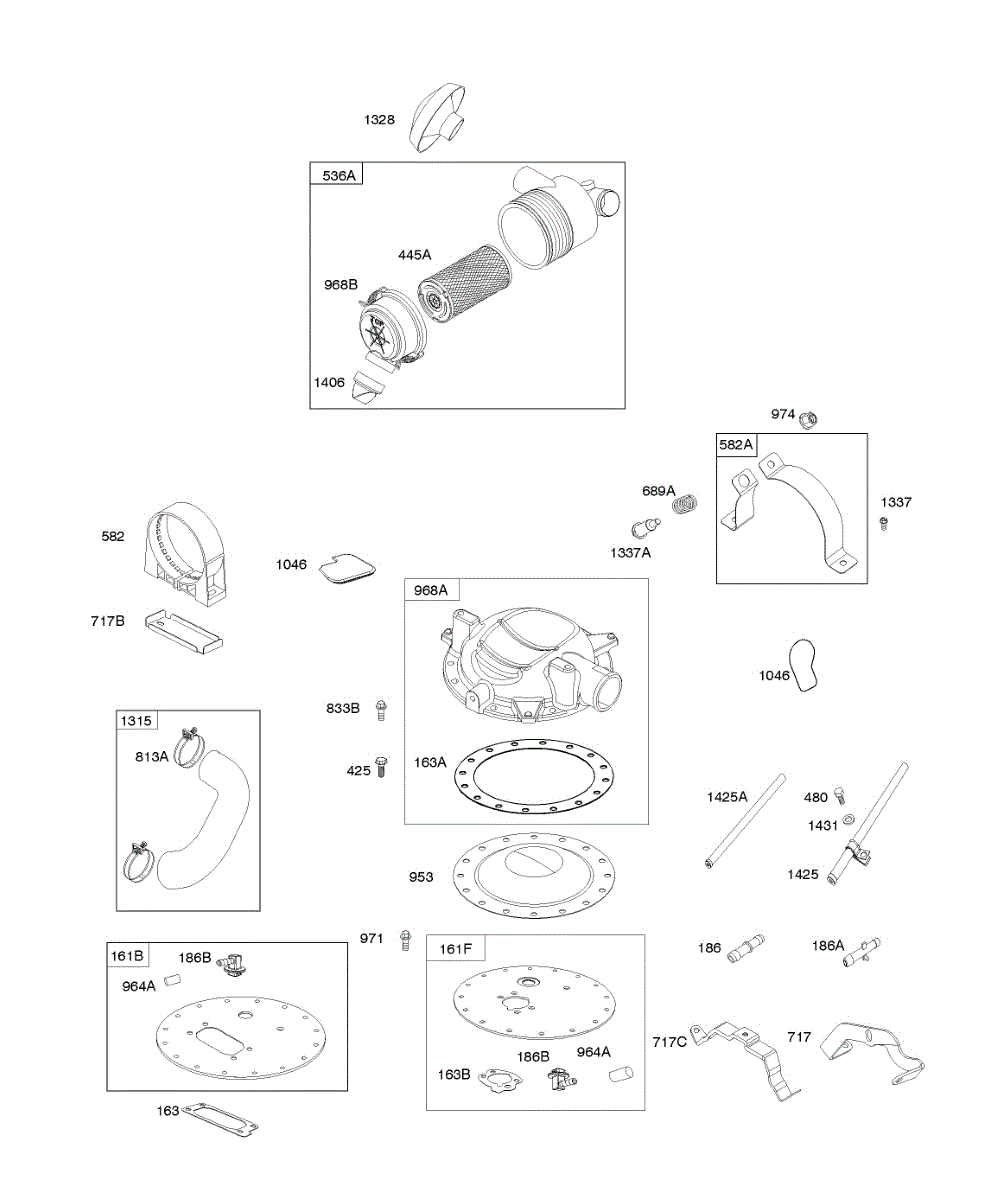 Parts for Briggs & Stratton 386447-0135-E1: Air Filter Systems, Parts