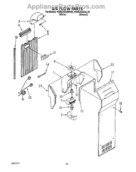 This fan scroll is the molded blower housing that directs airflow from the appliance fan for efficient cooling and ventilation. Replacing a damaged scroll restores proper air path and reduces airflow noise or performance issues. What it does