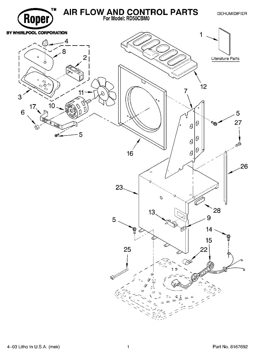 Parts for Roper RD50CBM0: 01 - Air Flow And Control Parts