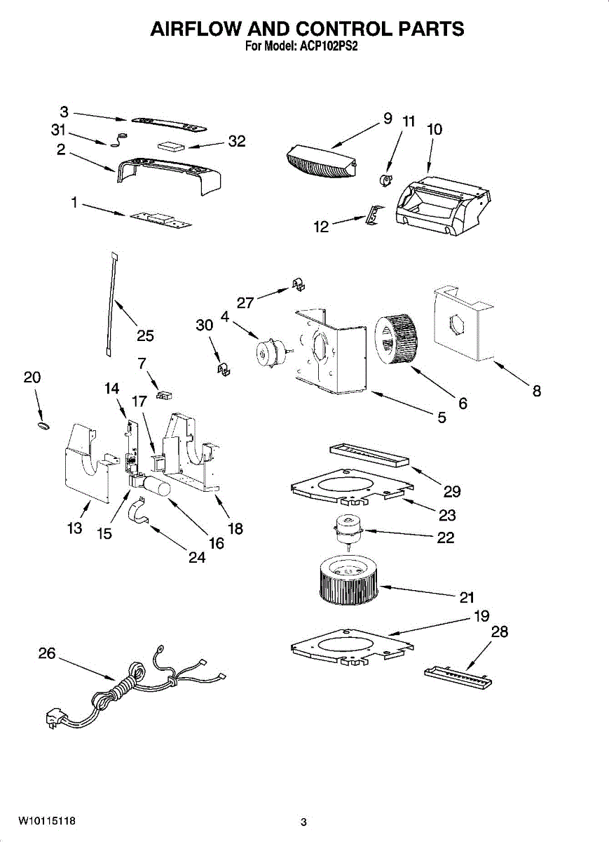 Parts for Whirlpool ACP102PS2: 02 - Air Flow And Control Parts