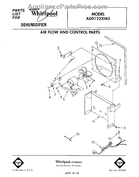 Parts for Whirlpool AD0122XM3: 01 - Section Parts