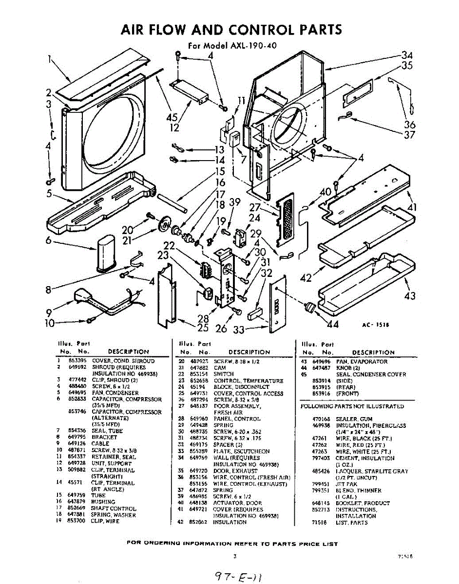 Parts for Whirlpool AXL19040: 03 - Air Flow And Control, Lit / Optional Parts