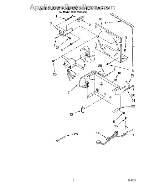 Parts for Whirlpool BHDH2500AS0: 03 - Air Flow And Control Parts