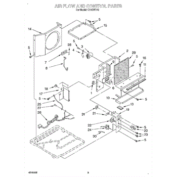 This screw is used to secure the handle end cap to the center of the door. The screw size measures 8-18 x 1/2 inches.