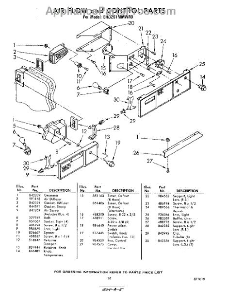 Parts for Whirlpool EHD251MMWR0: 19 - Air Flow And Control Parts