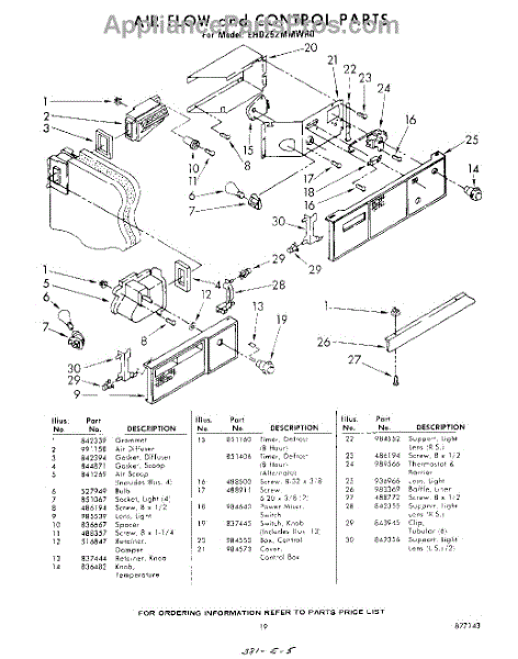Parts for Whirlpool EHD252MMWR0: 19 - Air Flow And Control Parts