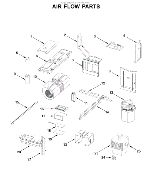 This deflector redirects airflow inside the appliance to protect internal components and help maintain even temperature and drying performance. It's a simple, durable replacement that restores proper air routing in the affected chamber. What it does: