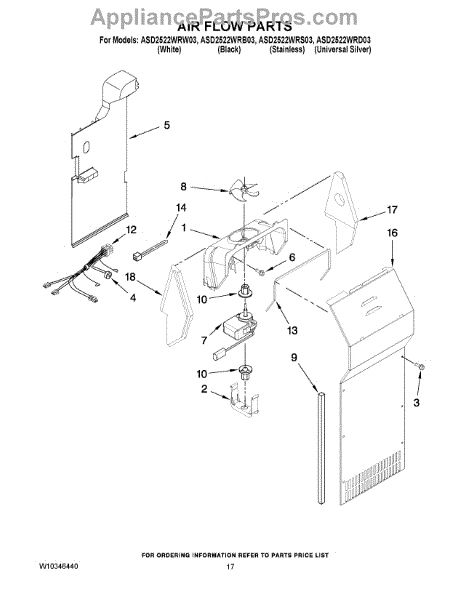The Evaporator Fan Motor is an OEM replacement part for Whirlpool refrigerators. Located inside the refrigerator compartment, it powers the evaporator fan, which circulates air across the cooling coils. This is the motor only. For the blade order part number WP2169142.