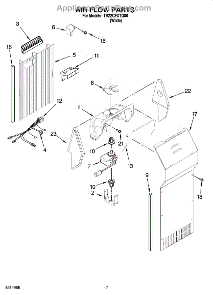 This fan scroll is the molded blower housing that directs airflow from the appliance fan for efficient cooling and ventilation. Replacing a damaged scroll restores proper air path and reduces airflow noise or performance issues. What it does