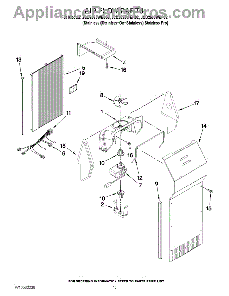 This fan scroll is the plastic housing that surrounds the evaporator fan in the freezer section. It directs air across the evaporator coils and into the ducts, helping your refrigerator move cold air evenly and maintain stable temperatures.