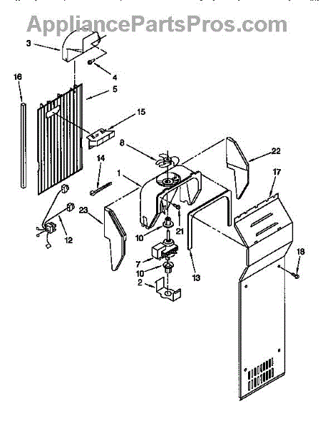 The Evaporator Fan Motor is an OEM replacement part for Whirlpool refrigerators. Located inside the refrigerator compartment, it powers the evaporator fan, which circulates air across the cooling coils. This is the motor only. For the blade order part number WP2169142.