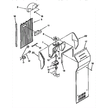 This fan scroll is the plastic housing that surrounds the evaporator fan in the freezer section. It directs air across the evaporator coils and into the ducts, helping your refrigerator move cold air evenly and maintain stable temperatures.