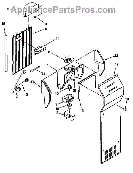 The Evaporator Fan Motor is an OEM replacement part for Whirlpool refrigerators. Located inside the refrigerator compartment, it powers the evaporator fan, which circulates air across the cooling coils. This is the motor only. For the blade order part number WP2169142.