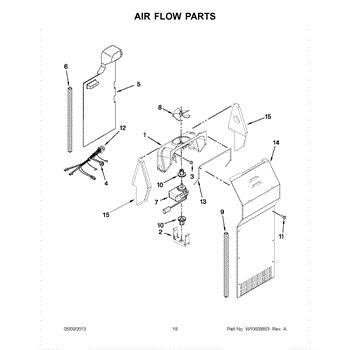 This fan scroll is the plastic housing that surrounds the evaporator fan in the freezer section. It directs air across the evaporator coils and into the ducts, helping your refrigerator move cold air evenly and maintain stable temperatures.
