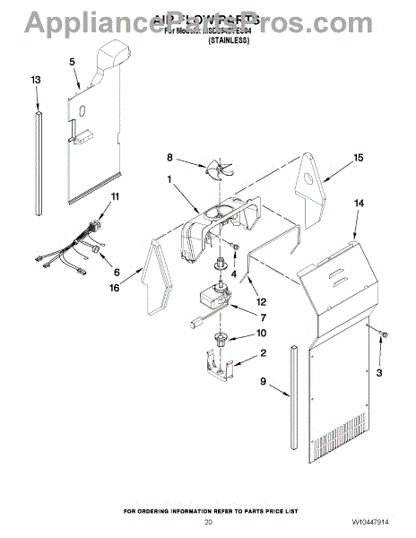 This fan scroll is the plastic housing that surrounds the evaporator fan in the freezer section. It directs air across the evaporator coils and into the ducts, helping your refrigerator move cold air evenly and maintain stable temperatures.