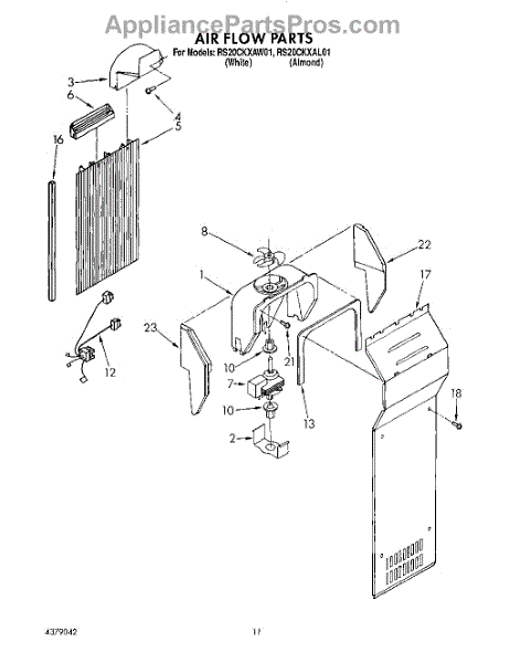 This fan scroll is the molded blower housing that directs airflow from the appliance fan for efficient cooling and ventilation. Replacing a damaged scroll restores proper air path and reduces airflow noise or performance issues. What it does
