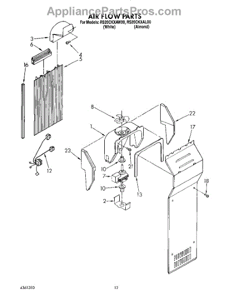 This fan scroll is the molded blower housing that directs airflow from the appliance fan for efficient cooling and ventilation. Replacing a damaged scroll restores proper air path and reduces airflow noise or performance issues. What it does