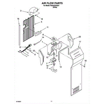 This fan scroll is the plastic housing that surrounds the evaporator fan in the freezer section. It directs air across the evaporator coils and into the ducts, helping your refrigerator move cold air evenly and maintain stable temperatures.
