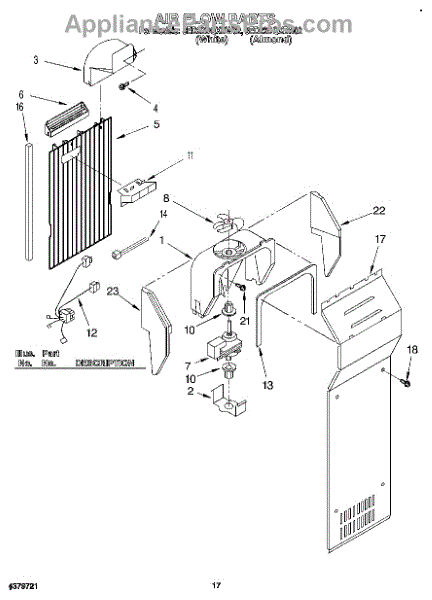This fan scroll is the molded blower housing that directs airflow from the appliance fan for efficient cooling and ventilation. Replacing a damaged scroll restores proper air path and reduces airflow noise or performance issues. What it does