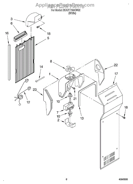 This fan scroll is the molded blower housing that directs airflow from the appliance fan for efficient cooling and ventilation. Replacing a damaged scroll restores proper air path and reduces airflow noise or performance issues. What it does